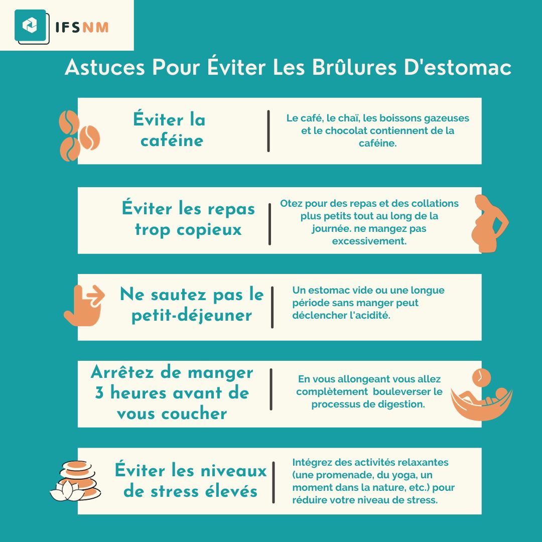 La prévention est toujours la meilleure approche quand il s'agit de brûlures d'estomac. En apportant quelques modifications à votre mode de vie et à vos habitudes alimentaires, vous pouvez grandement réduire votre risque de ressentir ces désagréments. N'oubliez pas que si les brûlures d'estomac persistent, il est essentiel de consulter un médecin, car cela peut être le signe de conditions plus graves.